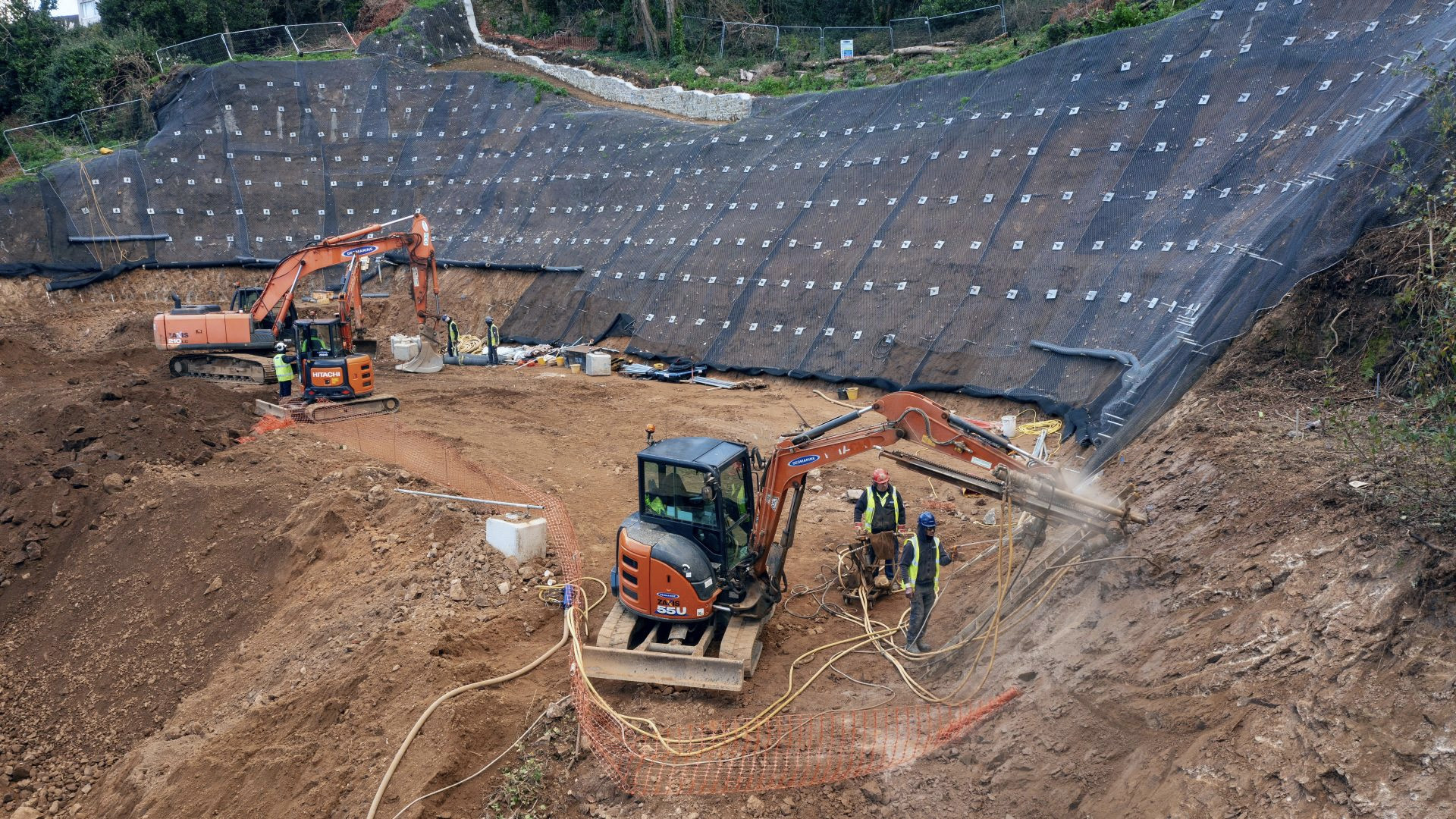 We’ve drilled 500 anchors up to 6m into the rock, installed 2,000sqm of steel netting and excavated 10,000T of earth and rock. All completed with our own local team of drillers, rope access technicians, skilled excavator operators and engineers.